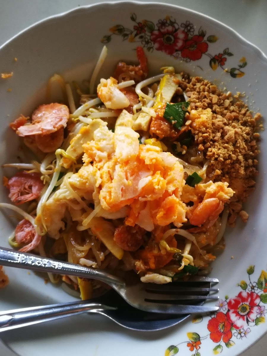 เส้นเหนียวนุ่ม รสชาติกลมกล่อม เครื่องมีไม่มาก กุ้งแห้ง ไข่เป็ด เต้าหู้ ถั่วงอก กุยช่าย จบความอร่อยที่เรียบง่าย แม่ค้าอัธยาศัยดีมีอยู่ 3 ท่าน